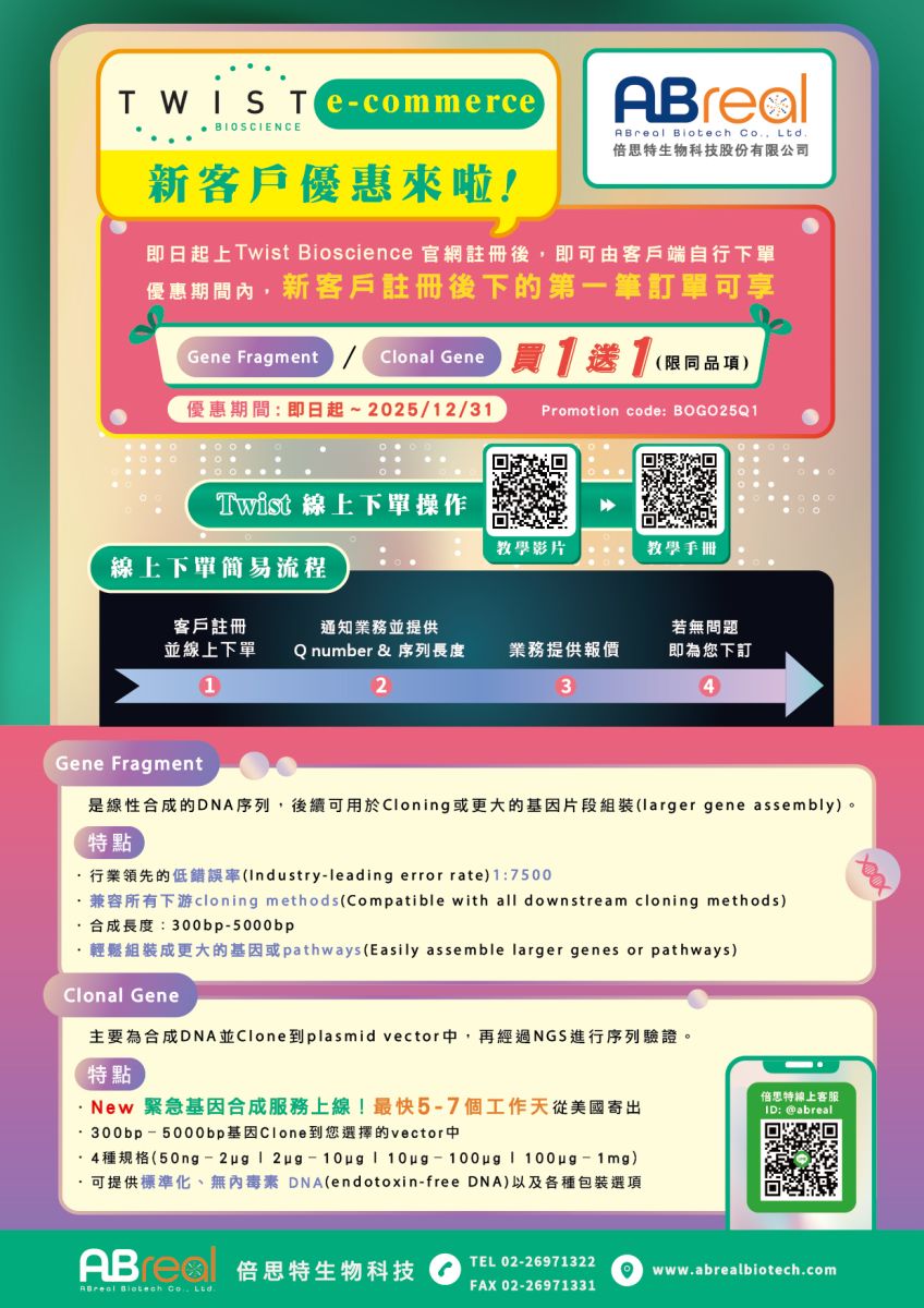 【免費體驗】 Twist Bioscience緊急基因合成服務