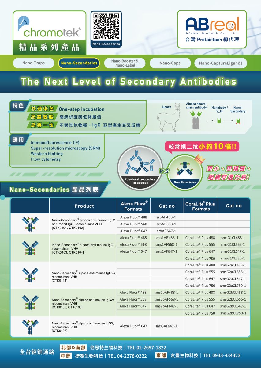 ABreal 倍思特 產品DM:PTG-Chromotek Nano-Secondaries reagents