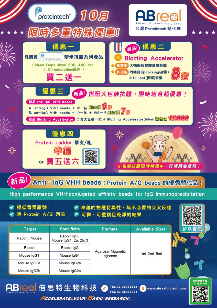 ABreal 倍思特 官網文章:【Proteintech】免疫沉澱 (IP) &免疫螢光 (IF) 的黃金標竿 Chromotek Nanobody-based Reagents